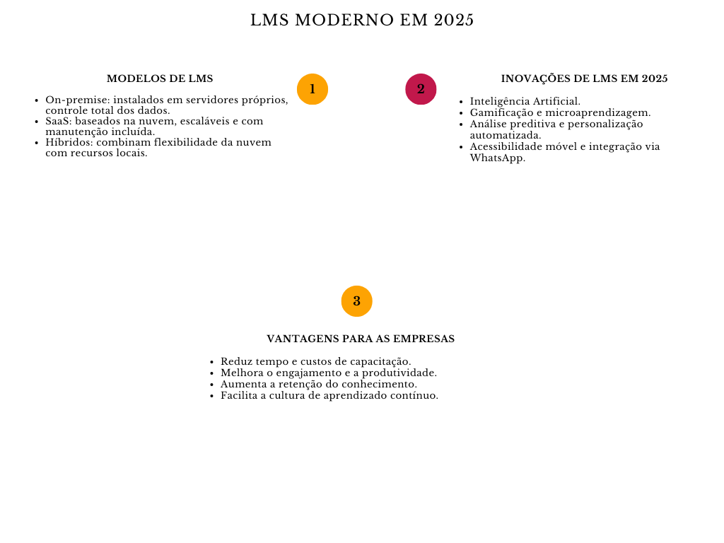 É aqui que entram os Sistemas de Gestão da Aprendizagem (LMS): plataformas digitais que não apenas organizam cursos, mas se tornaram o sistema nervoso do treinamento corporativo.