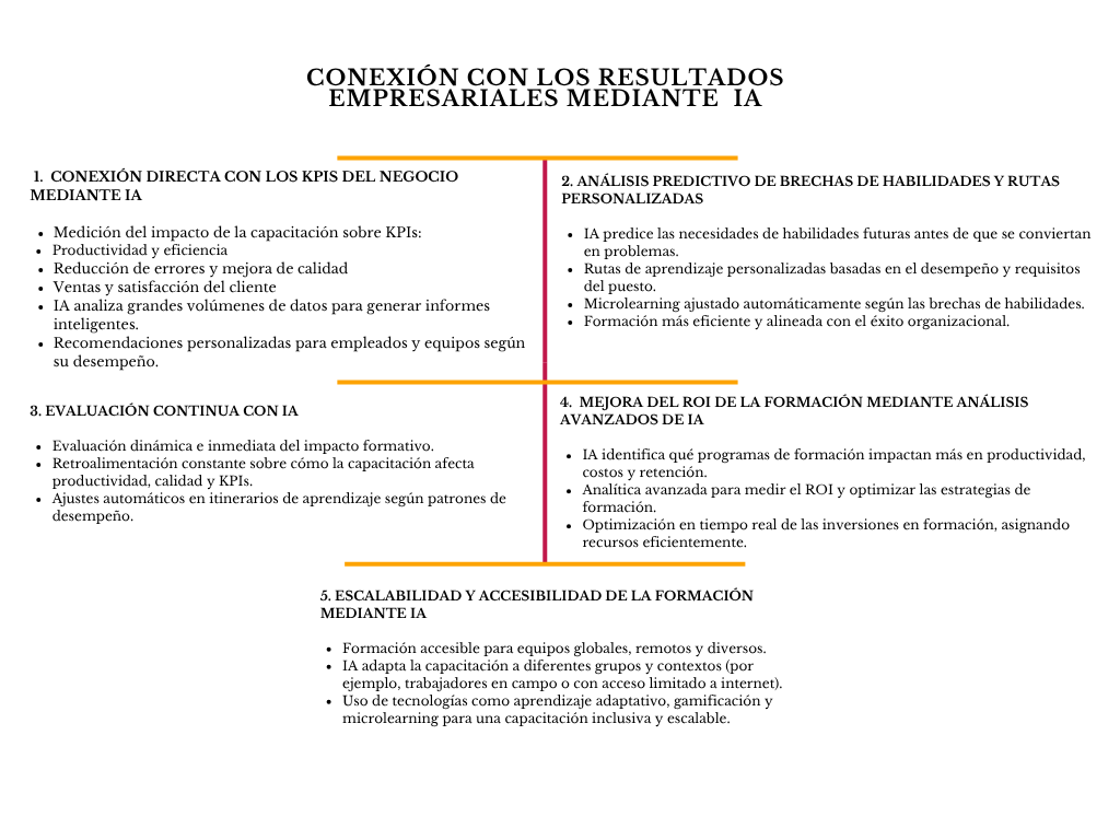 La IA personaliza el aprendizaje, mide el impacto y optimiza el desarrollo en tiempo real, conectando la formación directamente con los resultados estratégicos de la empresa.