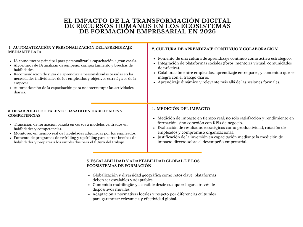 Diagrama el impacto de la transformación digital de recursos humanos en los ecosistemas de formación empresarial en 2026