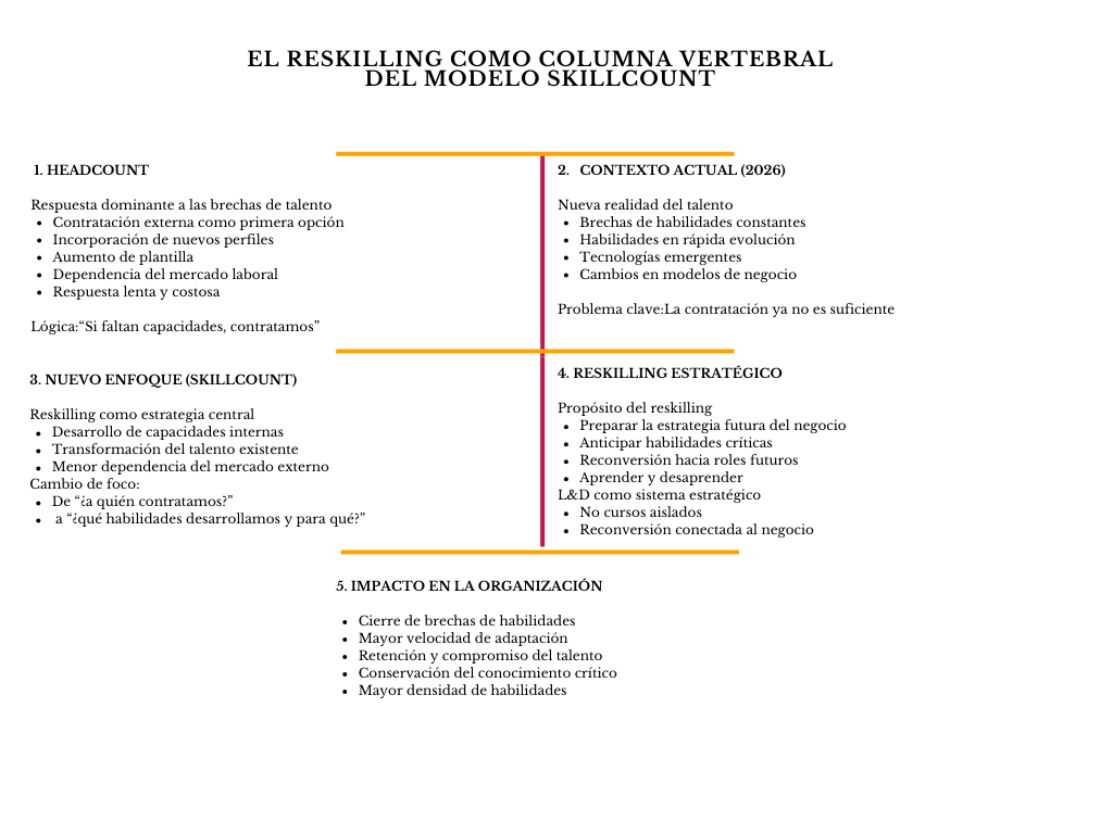 Aquí es donde el reskilling deja de ser una iniciativa complementaria y se convierte en una estrategia central del modelo skillcount.